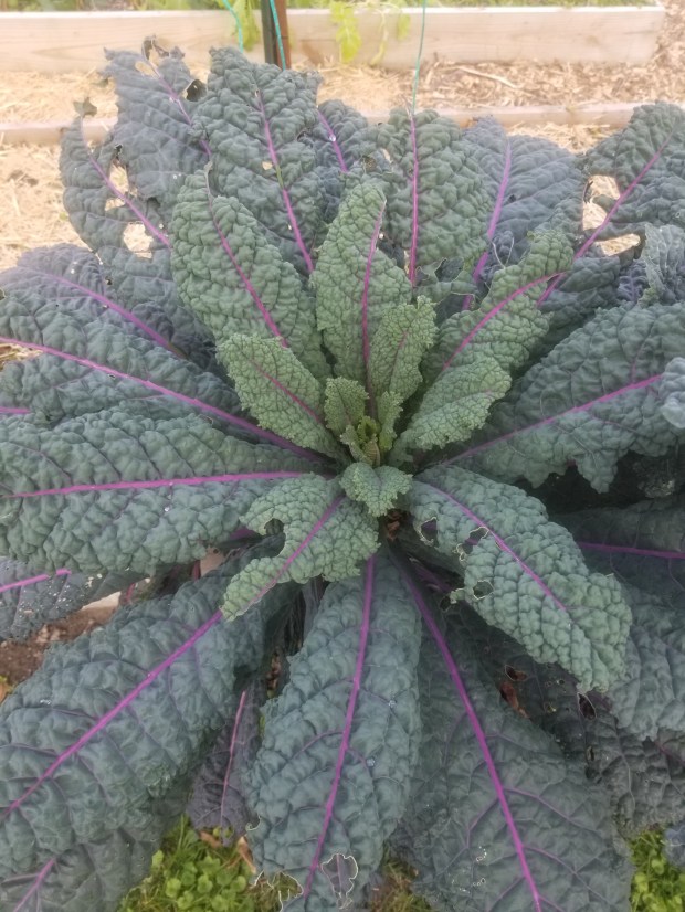 The last one I grew, Casper, was supposed to be a variegated curly kale. It grew well, but when Summer came around, something… happened… I’m not up to snuff on my plant diseases. Maybe it was powdery mildew? Maybe it was spider mites? The entire plant looked like it was stuck in a dust storm. It never got the white variegation. I yanked it out since it was next to all the other kales. No other kales looked like that. So, as beautiful as Casper might have been, maybe avoid it for some of the tougher ones above.
